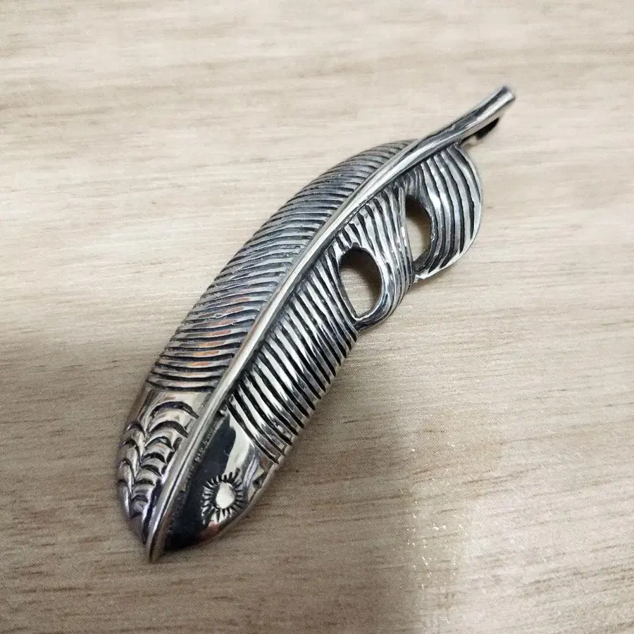 실버로 제작된 날개 모양의 펜던트로, 정교한 조각이 매력적입니다.