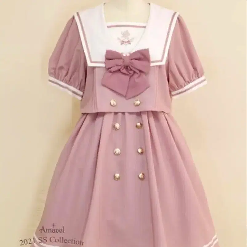 Amavel 컬러풀 셋업 스타일 세일러 원피스 핑크