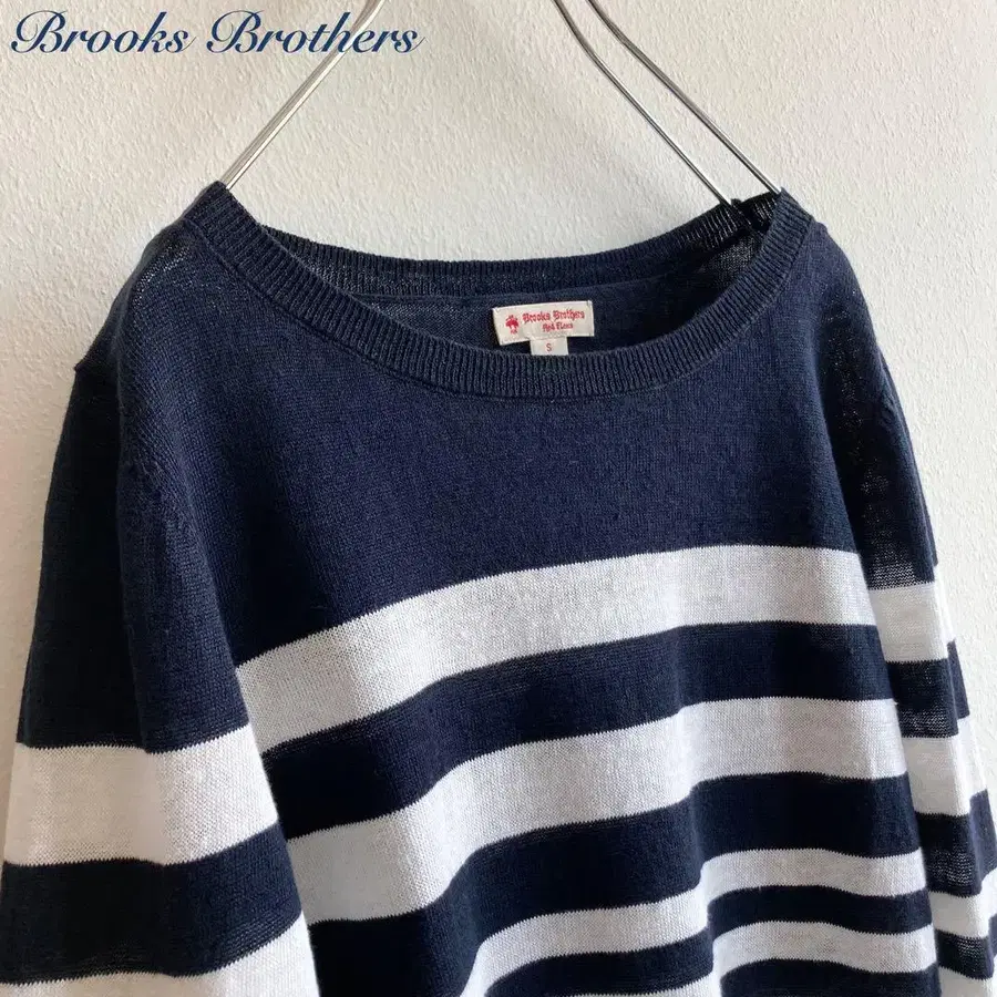 BROOKS BROTHERS 브룩스브라더스 레드 플리스 보더 리넨 니트 네이비 화이트