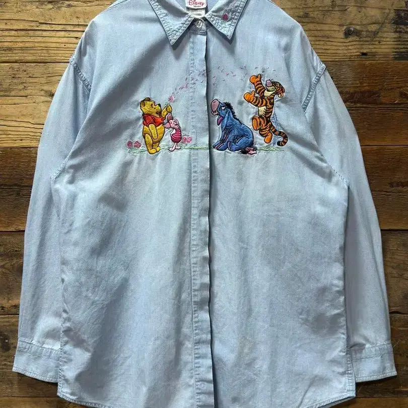 디즈니 VINTAGE 곰돌이 푸 Pooh 자수 긴팔 셔츠 L