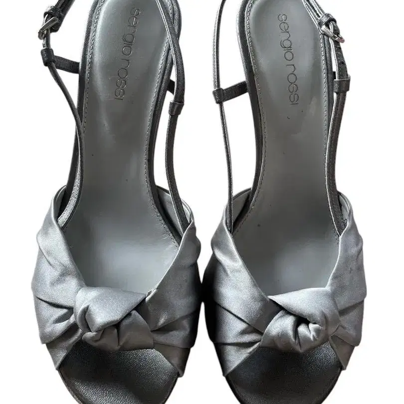 세르지오로시 새틴 샌들 35 사이즈 7.5cm 힐 실버