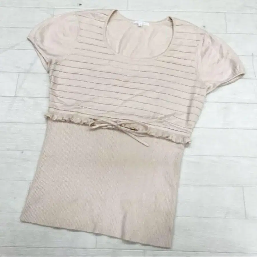 TO BE CHIC 투 비 시크 반팔 니트 캐시미어 혼합 베이지