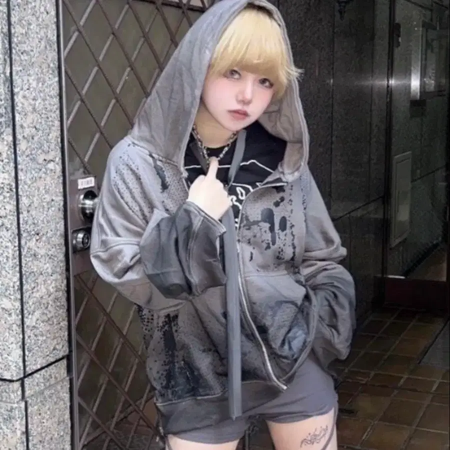 고전적인 녹슨 디자인 지퍼 후드 집업