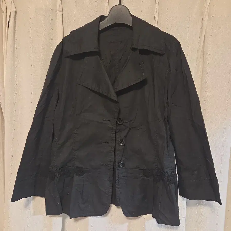 프릴과 꽃 자수가 장식된 캐주얼한 블랙 버튼 자켓. - 색상: 블랙 - 디자인: 버튼 자켓 - 장식: 프릴과 꽃 자수 - 스타일: 캐주얼 방문해 주셔서 감사합니다. INGEBORG 13 사이즈