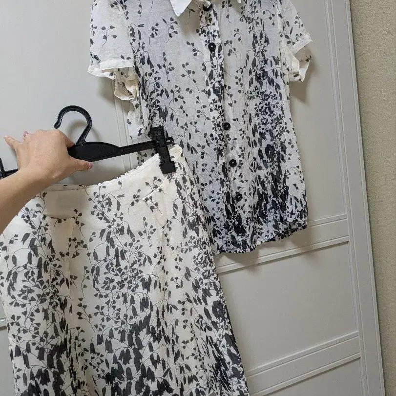 반팔 셔츠와 스커트 세트 실크