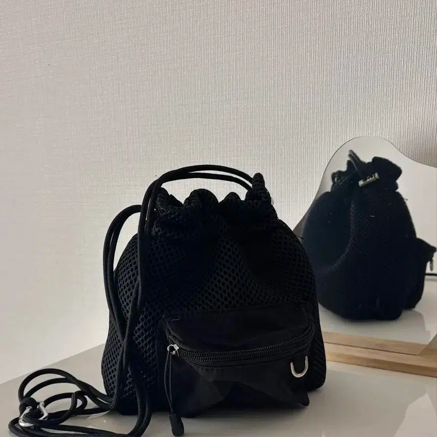 트렌드감 넘치는 메쉬 소재 × 끈 디자인 숄더백입니다.