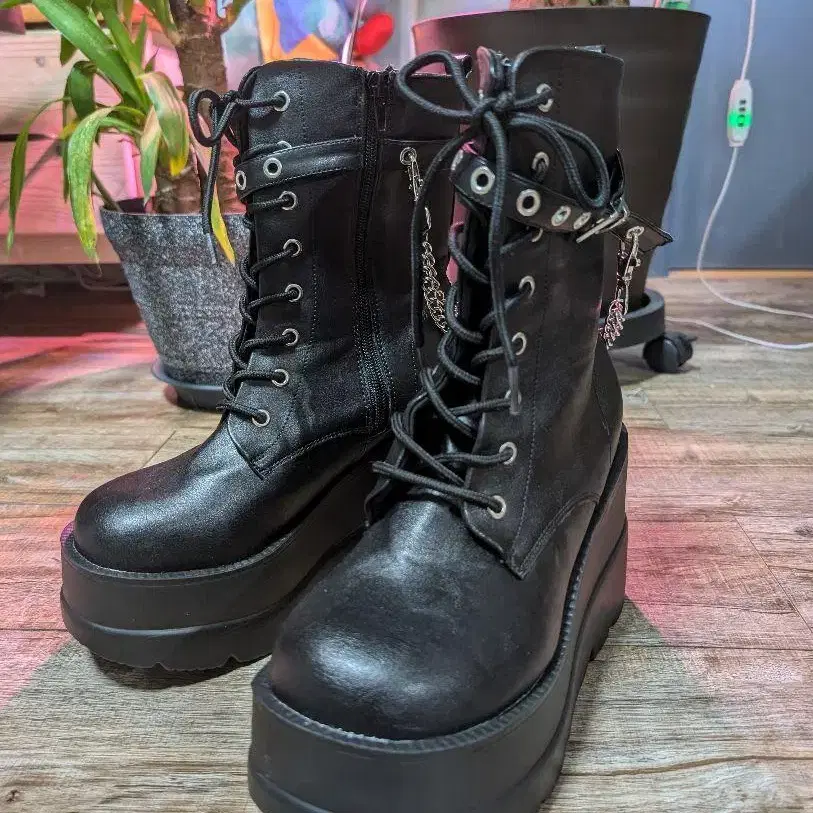 통굽 부츠 25cm 블랙 레이스업 부츠 체인 Y2K 고스로리