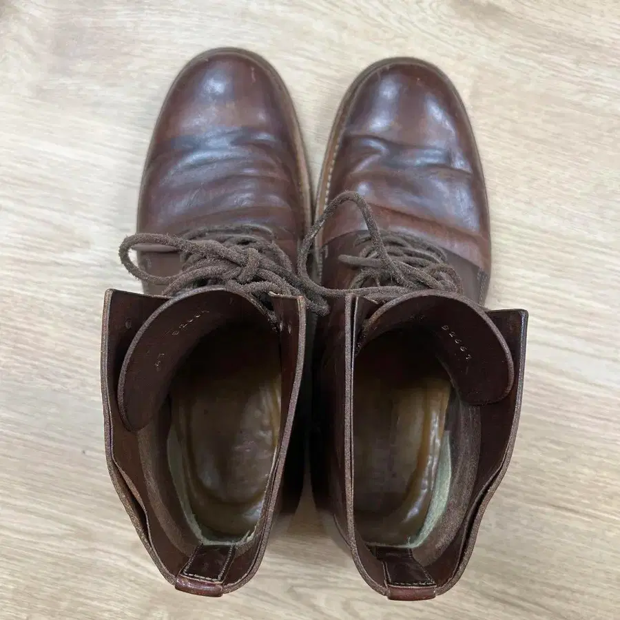 브라운 가죽 레이스업 부츠