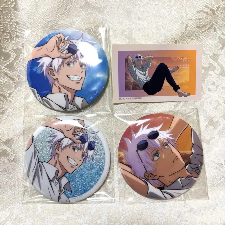 주술회전 세가 럭키 쿠지 고죠 사토루 캔뱃지 혜택 스티커