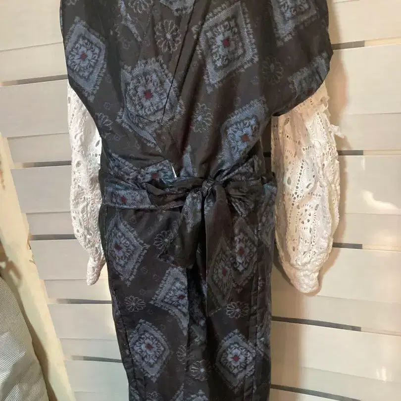 기모노 리메이크 베스트와 팬츠 상하의 세트 오시마 패턴 M L