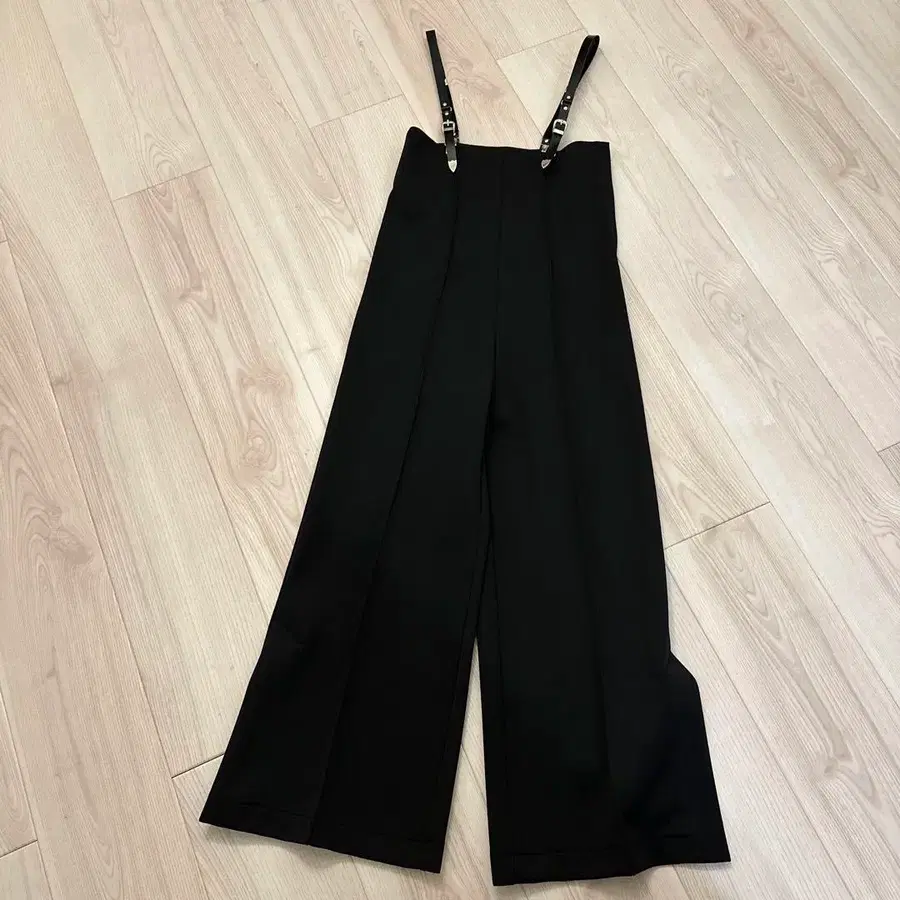 서스펜더가 있는 블랙 와이드 레그 팬츠