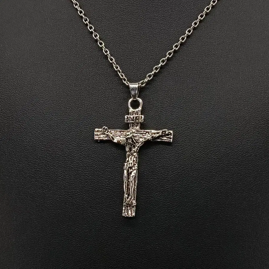• 실버 십자가 로사리오 체인 목걸이 펜던트 롱 그리스도