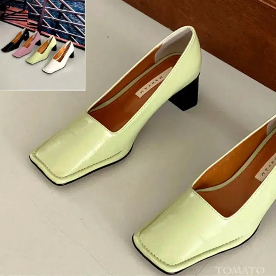 라이트 그린 스퀘어토 펌프스