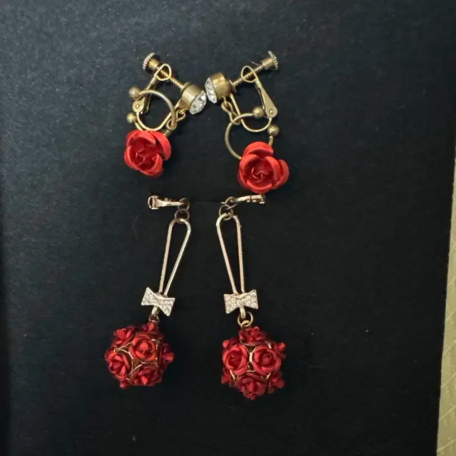 ✨고급스러운 빨간색이 매력적인 귀걸이입니다✨ 빛의 각도에 따라 빛이 변하는 아름다운 디자인. 포멀한 옷차림에도 캐주얼한 옷차림에도 잘 어울리고 얼굴을 화려하게 만들어줍니다. 눈에 띄는 흠집이나 얼룩이 없으며, 아직 사용하실 수 있습니다. 중고품에 대해 이해가 있으신 분들께 추천합니다. 논홀