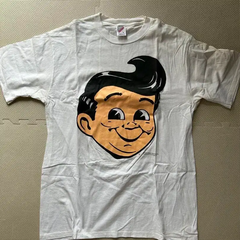 캐릭터 얼굴 프린트의 화이트 T셔츠, 100% 코튼 소재, 사이즈 L. - 색상: 화이트 - 디자인: 캐릭터 얼굴 프린트 - 사이즈: L - 소재: 100% 코튼 - 브랜드: JERZEES 방문해 주셔서 감사합니다.