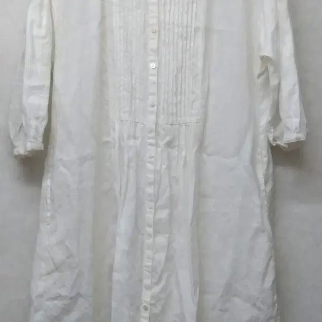 린넨 소재의 화이트 튜닉, 오분 소매, 플리츠 디자인이 특징입니다. 어깨는 레이스를 사용한 세련된 디자인입니다. - 브랜드: Chau Chau de maman - 컬러: 화이트 - 디자인: 버튼, 플리츠 - 소매 길이: 오분 소매 - 소재: 린넨 방문해 주셔서 감사합니다. 사이즈 기장 약 103cm 가슴 너비 약 60cm