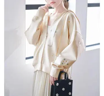 • 에비수돈나 32 그레이 벨로아풍 후드티 자수 면 혼방