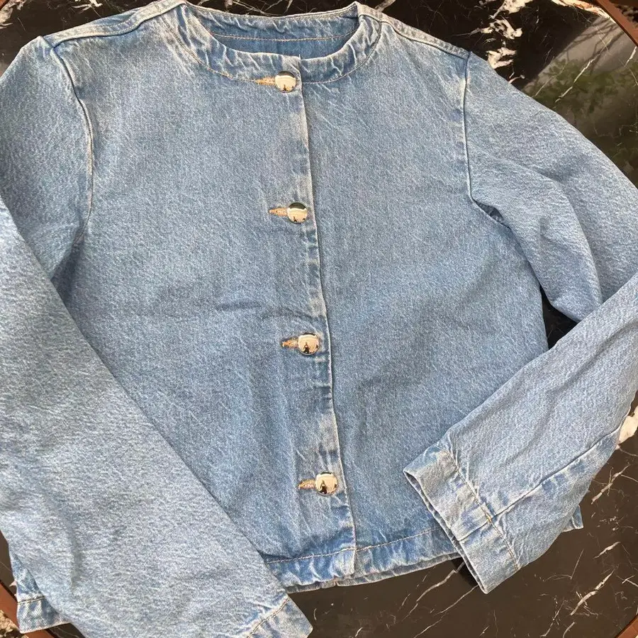 자라 데님 자켓 노카라 실버 버튼