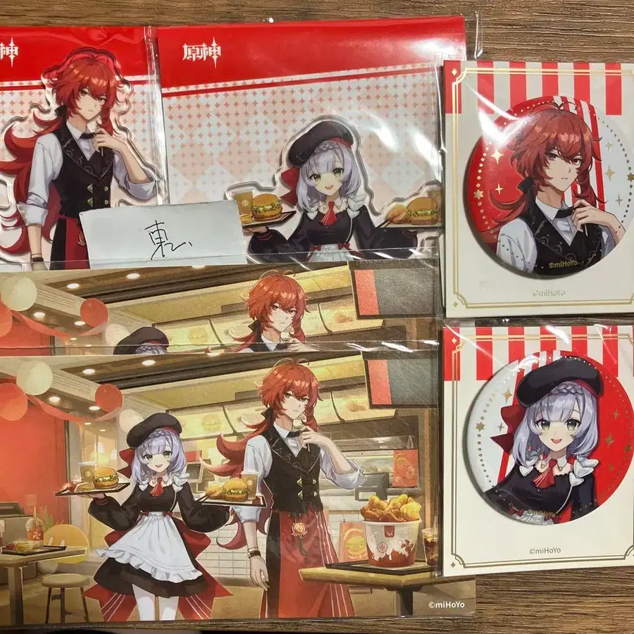 원신 딜럭 노엘 KFC 아크릴 스탠드 캔뱃지 엽서 6종