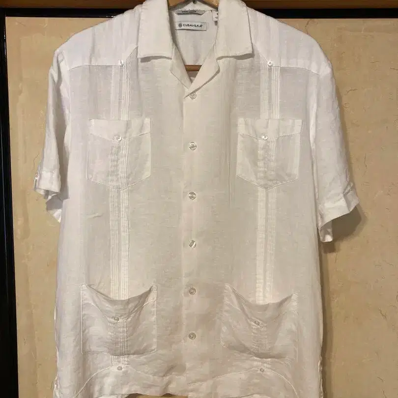 화이트 쿠바 셔츠 반팔 4 포켓
