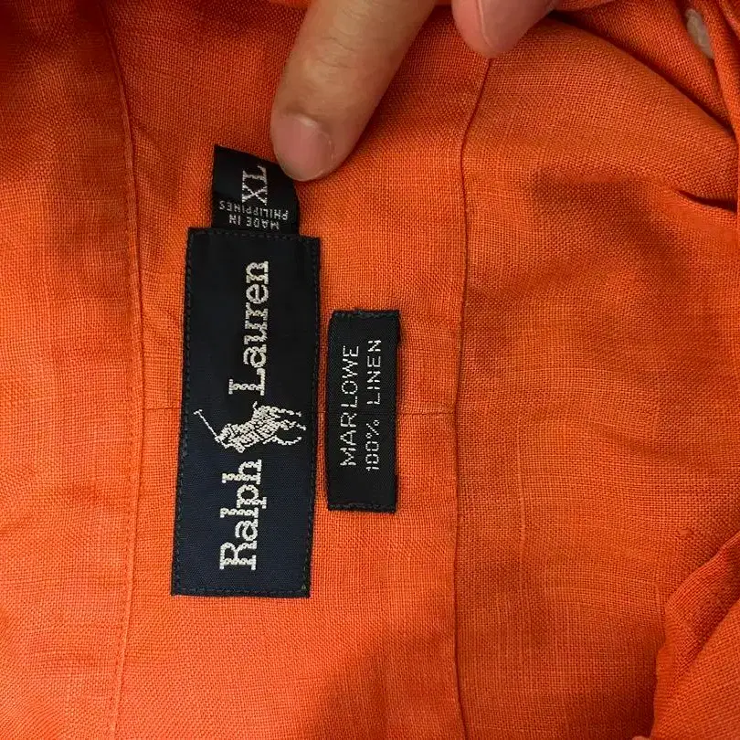 린넨 소재의 시원한 오렌지 컬러 반팔 셔츠 (MARLOWE), 포켓에 자수 로고가 있습니다. 칼라에 올풀림이 있지만 착용 시에는 별로 신경 쓰이지 않을 것입니다. - 색상: 오렌지 - 브랜드: Ralph Lauren - 사이즈: XL 어깨 너비 56cm, 총길이 84cm, 소매 길이 27cm - 소재: 린넨 100 - 특징: 포켓에 자수 로고 방문해 주셔서 감사합니다.