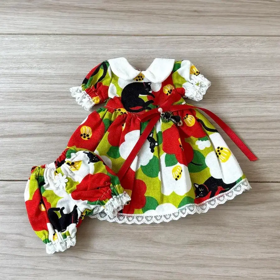 슈퍼돌피 유아 SD 사이즈 아웃핏 큰 꽃 무늬의 고양이 원피스 서랍과 세트로 구성되어 있습니다. 보관으로 주름이 있습니다. 유패킷 포스트로 발송 예정입니다.