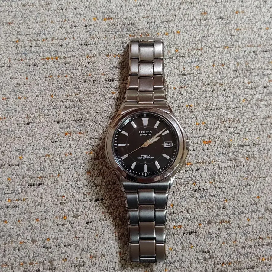 다크 브라운의 CITIZEN 아테사 시계. - 브랜드: CITIZEN - 모델명: 아테사 - 색상: 다크 브라운 - 소재: 스테인리스 스틸 - 날짜 표시: 있음 사진이 전부입니다. 약간의 스크래치와 흠집이 있습니다. 방문해 주셔서 감사합니다.