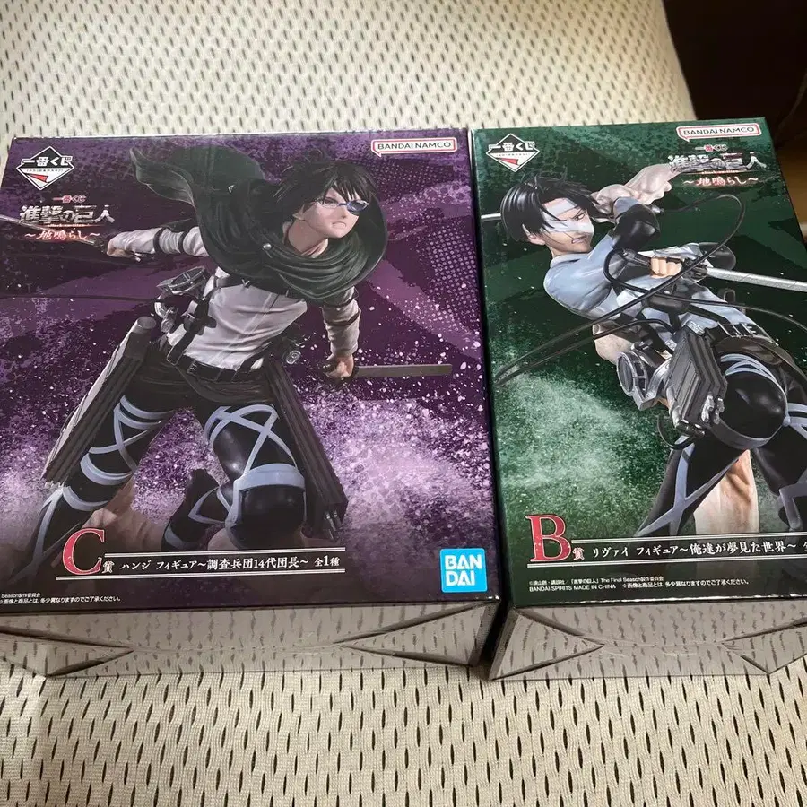 진격의 거인 제일복권 땅울림 미개봉 새상품입니다. 에어캡으로 포장하여 종이상자에 넣어 발송해 드립니다. ・B상 리바이 피규어 ・C상 한지 피규어 총 2개입니다.