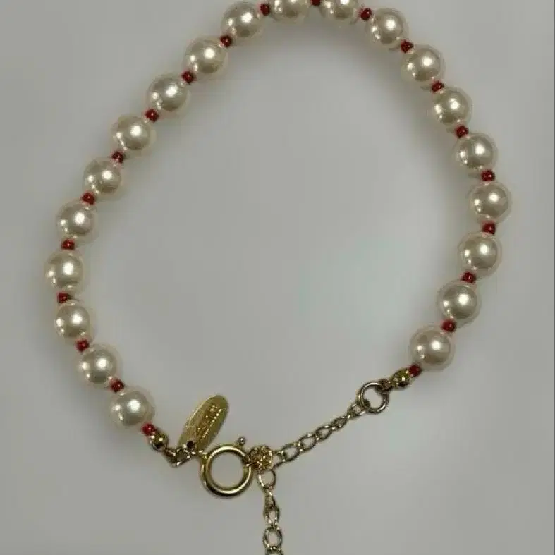 펄 사이로 빨간색 비즈가 악센트를 주는 귀여운 팔찌입니다. #핑크하우스 #팔찌