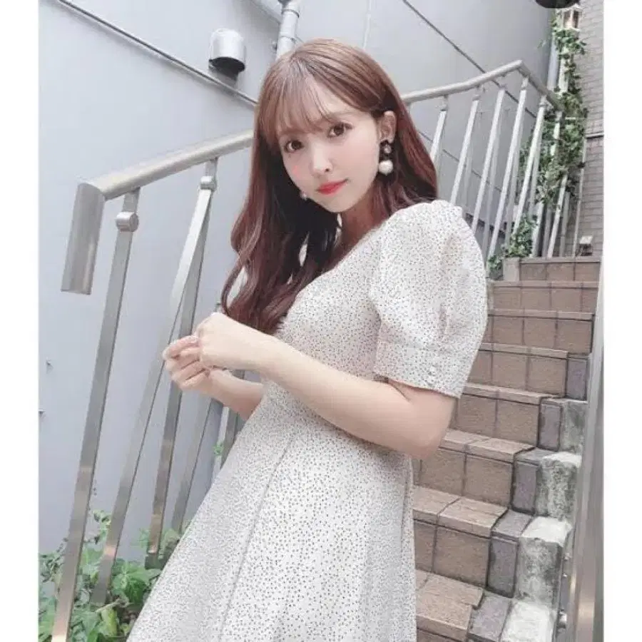 SNIDEL 화이트 블랙 도트 롱 원피스