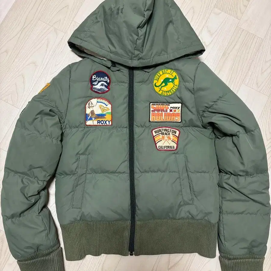 색상···그린 소재(겉감)···나일론 소재(충전재)···다운 약간의 얼룩 있음