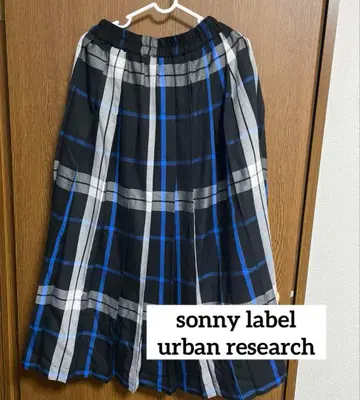 새상품 어반 리서치 서니 라벨 체크 플리츠 이지 스커트 블루