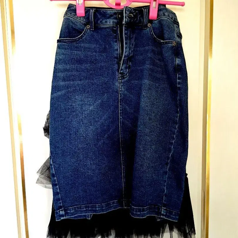 데님과 튤의 유니크한 콤비네이션 타이트 스커트. - 브랜드: ROYAL PARTY - 디자인: 데님과 튤의 콤비네이션 - 스타일: 타이트 스커트 - 색상: 데님 블루와 블랙 - 소재: 데님과 튤 - 허리: 버튼과 지퍼 포함 S 사이즈 스트레치 있음 총장 53 (속치마 제외)