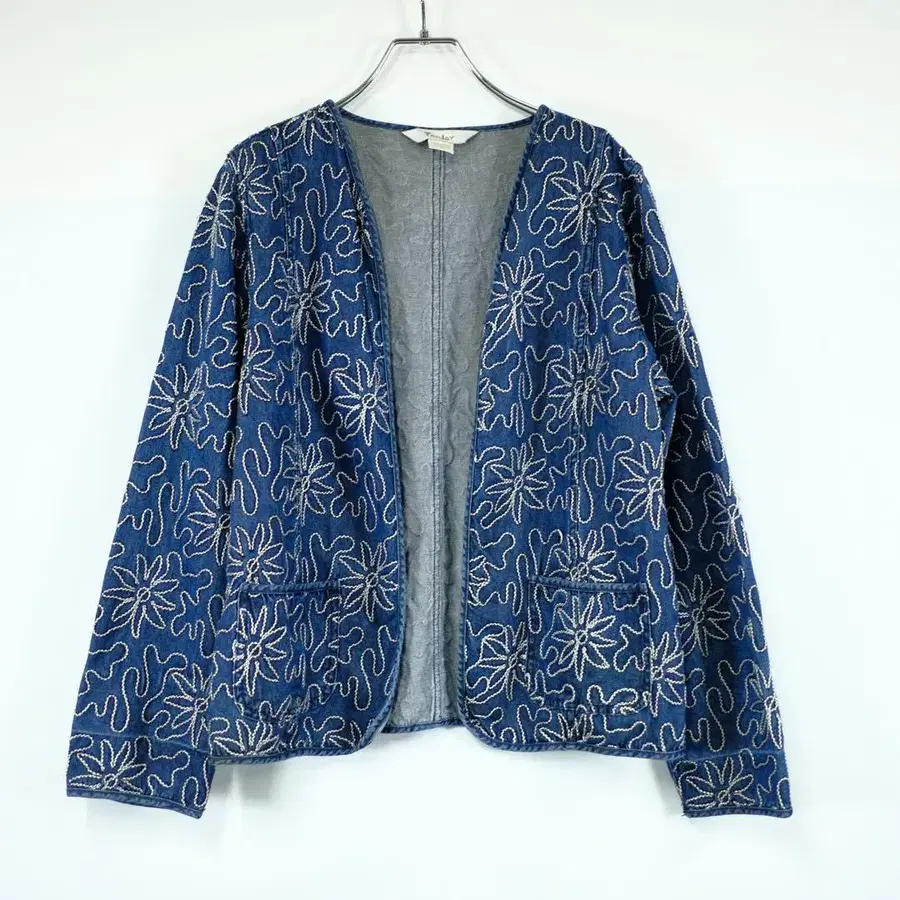 1990년대 빈티지 스티치 워크 꽃무늬 데님 자켓 노카라 구제 의류