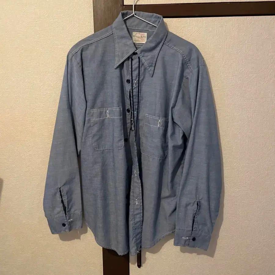 자동 번역되었어요. 원문보기데님 소재의 긴팔 셔츠로 뒷면에 'Puget Sound Country' 자수가 있습니다.