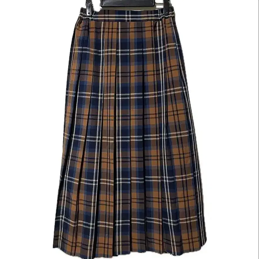체크 무늬 플리츠 롱 스커트 안감 부착 빈티지