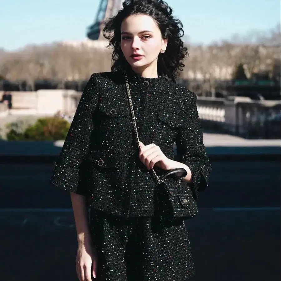 douce harmonie 노카라 트위드 자켓 블랙