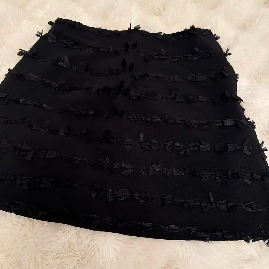리본 장식의 블랙 미니 스커트, 사이즈 S.
