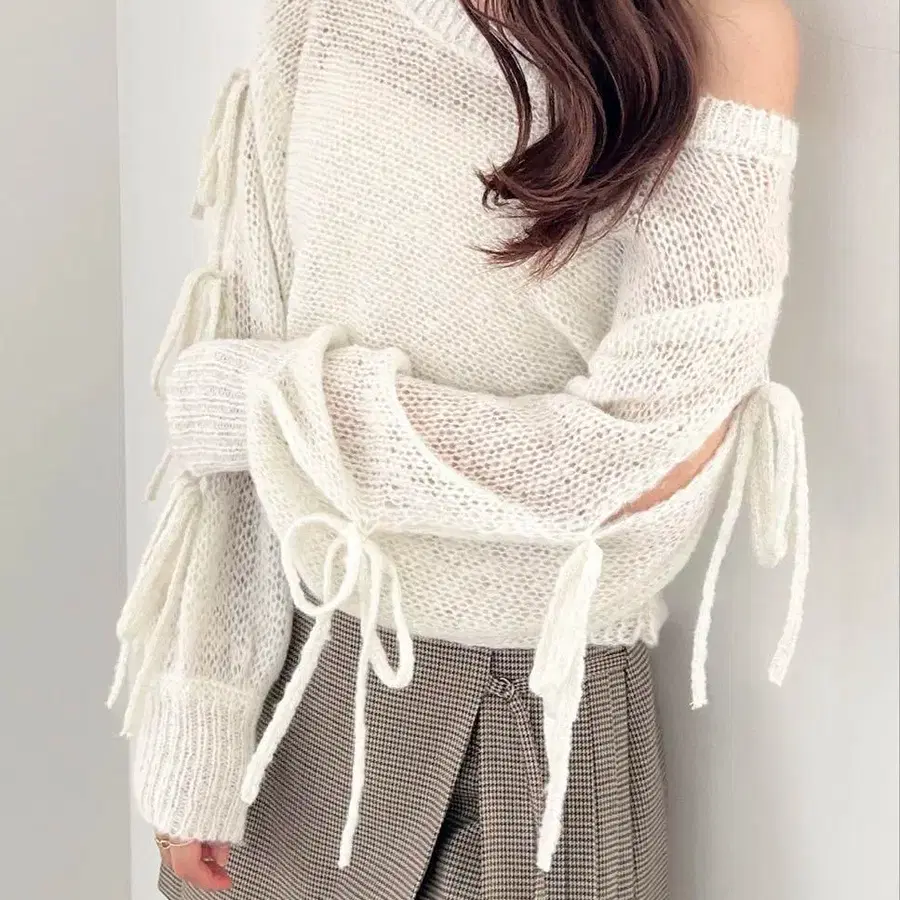 헤더 메쉬 라메 리본 니트