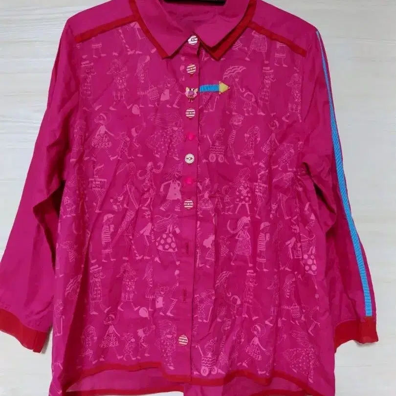 핑크 반소매 올 패턴 셔츠 버튼 포함