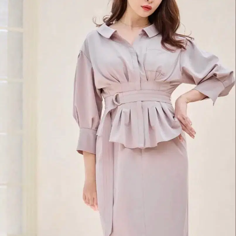 미사용 새상품 Belted Denim Effet Shirt Dress