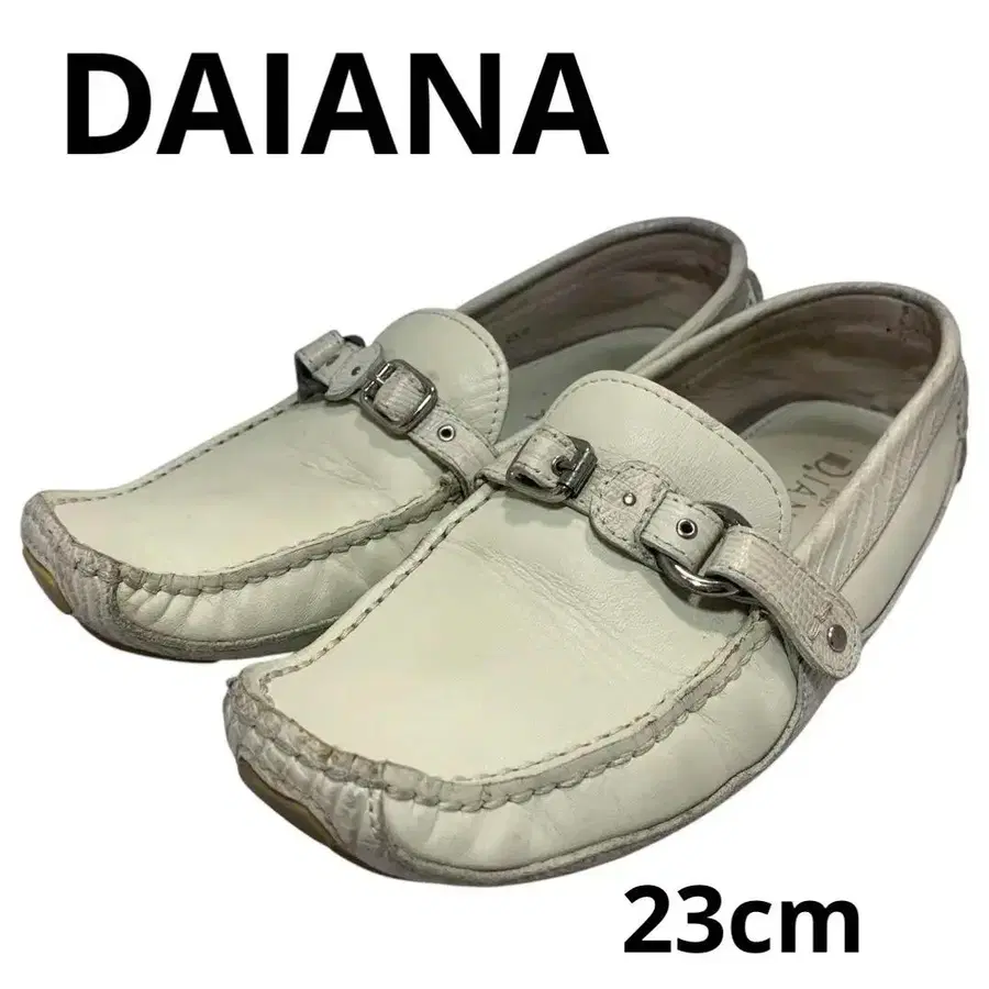 자동 번역되었어요. 원문보기버클이 달린 화이트 가죽 로퍼로, 플랫 밑창이 특징입니다.