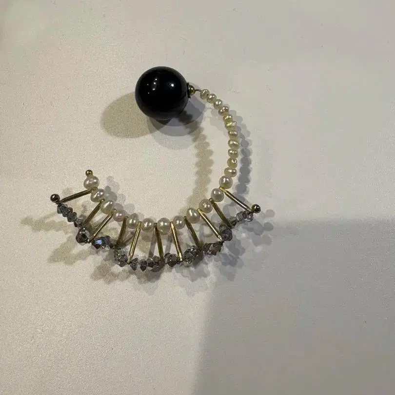 C.A.D tokyo 프릴 귀걸이 아쉬 프랑스에서 구입한 제품으로 몇 번 사용했습니다. 상자는 없습니다. 블랙 볼과 장식이 특징인 한쪽 귀에 착용하는 귀걸이. - 색상: 블랙과 실버 - 소재: 금속과 펄 - 디자인: 한쪽 귀에 착용하는 귀걸이 - 장식: 크리스탈과 펄 방문해 주셔서 감사합니다.