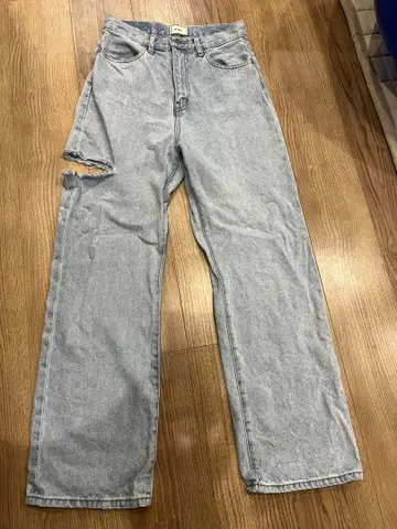 • &DENIM 울트라 하이웨스트 와이드 데님 L 상당 데미지 가공