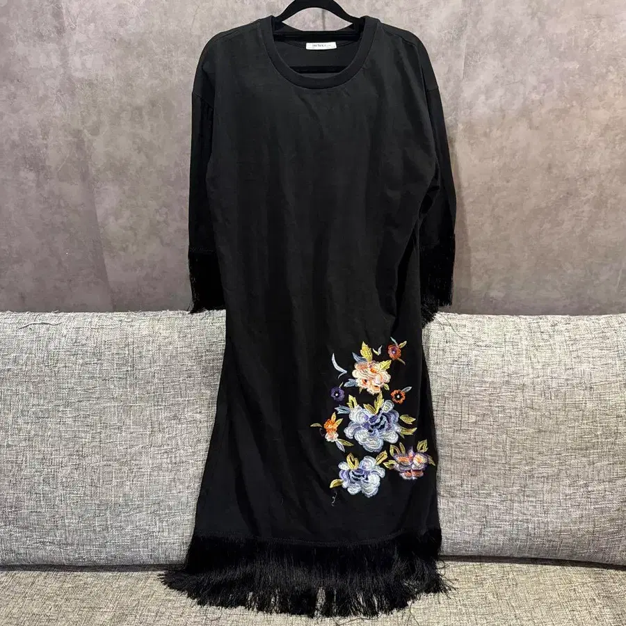 꽃무늬 자수와 밑단의 프린지가 특징인 블랙 롱 원피스. - 색상: 블랙 - 디자인: 꽃무늬 자수 - 프린지: 밑단에 프린지 있음 - 소매 길이: 긴 소매 - 스타일: 롱 원피스 ⑬ 방문해 주셔서 감사합니다.