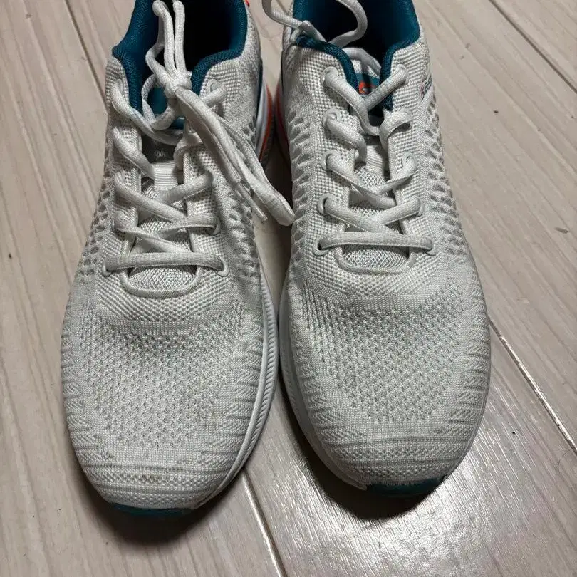 메쉬 어퍼와 쿠션성이 뛰어난 미드 솔이 특징인 화이트/터콰이즈 테니스화. - 컬러: 화이트/터콰이즈 - 사이즈: UK 9 / US 10 / EU 43 - 디자인: 메쉬 어퍼 - 밑창: 러버 솔 - 특징: 쿠션성이 뛰어난 미드 솔 방문해 주셔서 감사합니다.