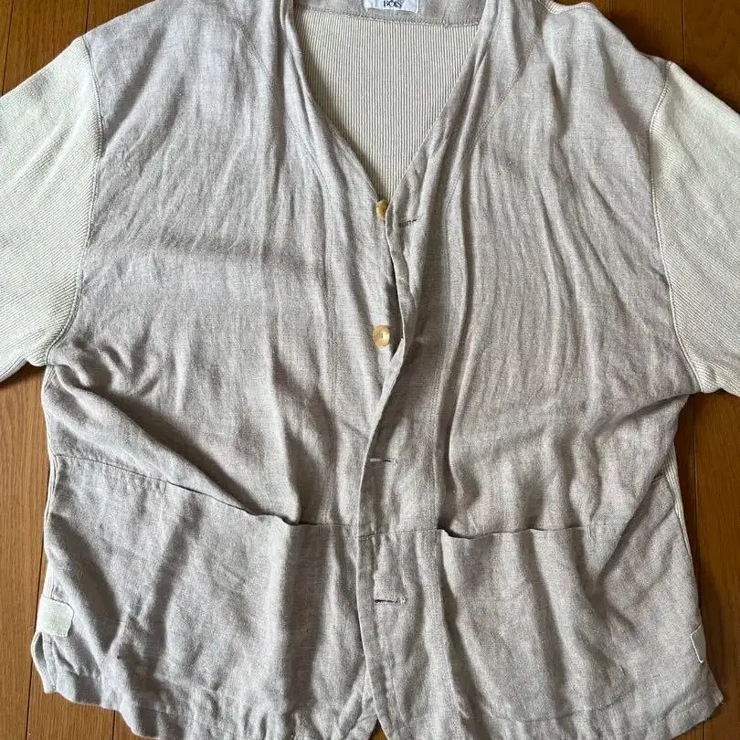 베이지 린넨 혼방 가디건