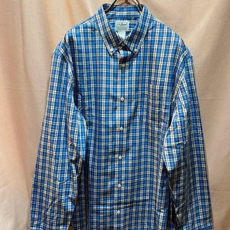 LL BEAN 긴팔 버튼 다운 체크 셔츠 얇은 소재 블루 계열 엘엘빈