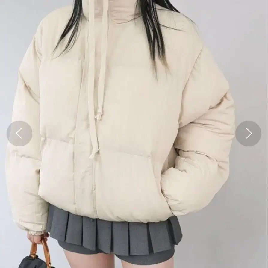 밑단 조절 가능 2WAY! 머플러 포함 노카라 볼륨 페이크 다운 자켓