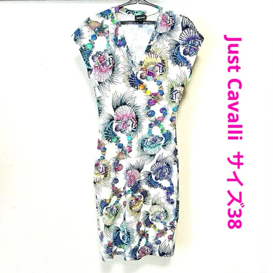 저스트 카발리 컬러풀한 꽃무늬 V넥 원피스 38